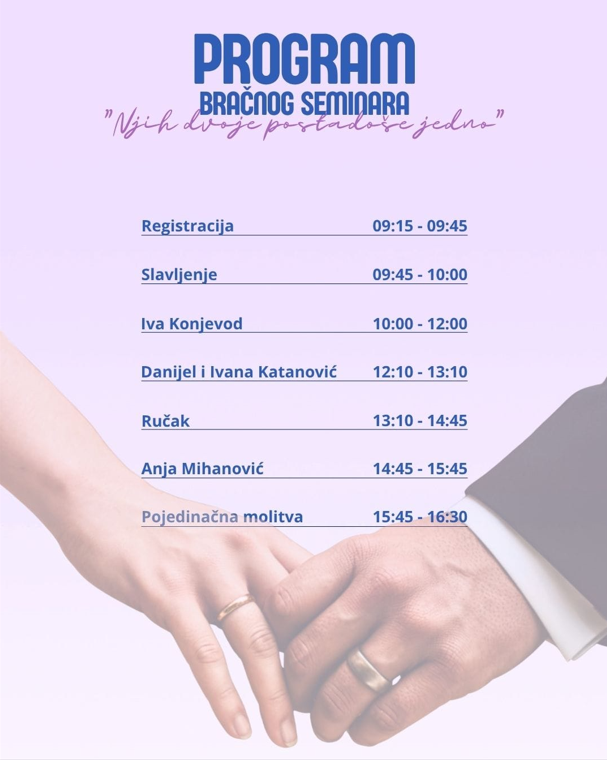 Ovaj Bračni seminar pružit će priliku za produbljivanje bračnog odnosa, bolje međusobno razumijevanje te duhovni rast.